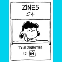 Lucy Van Pelt is ready to sell some zines for only a nickel each!